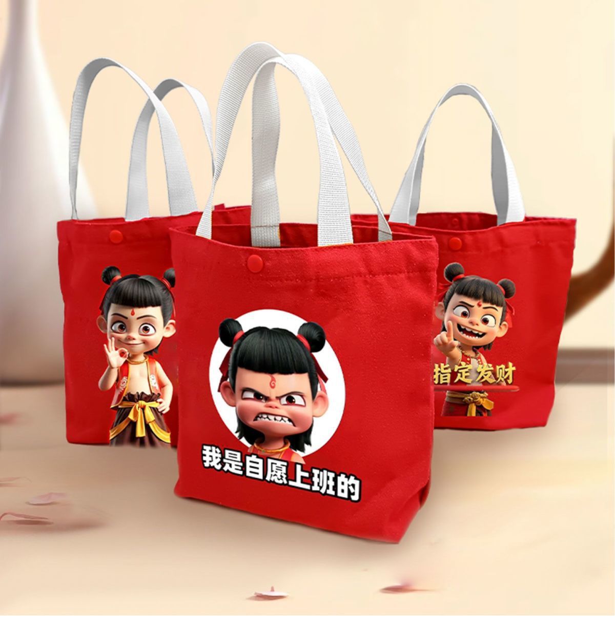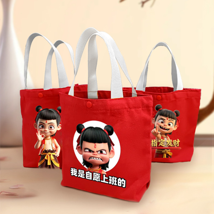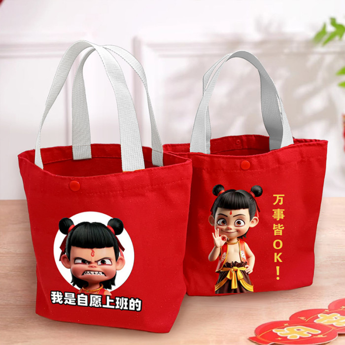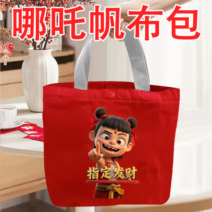 手提包可攜式兜哪吒帆布手學生上班袋拎手提袋便當拎手少女帆布包女