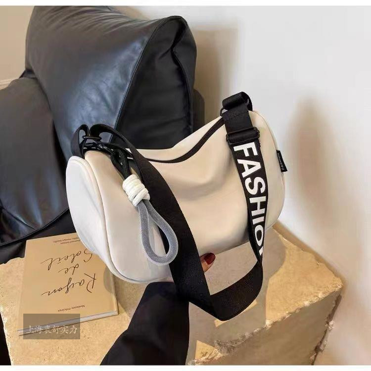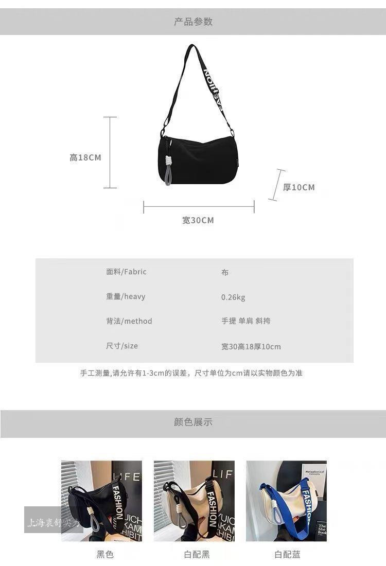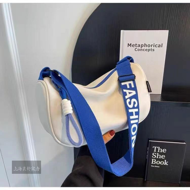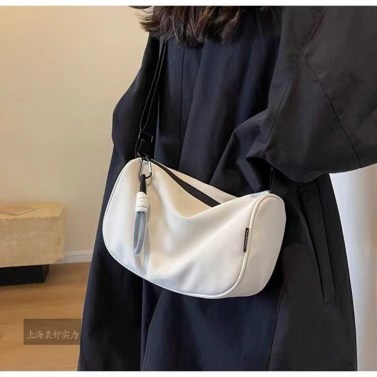 大容量尼龍帆布包包女時尚2025新款休閒單肩包百搭寬帶斜背枕頭包
