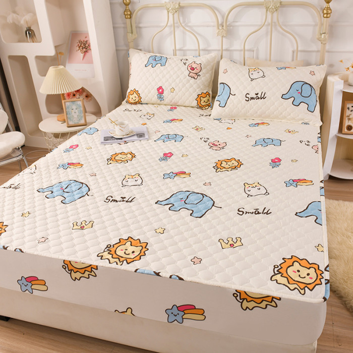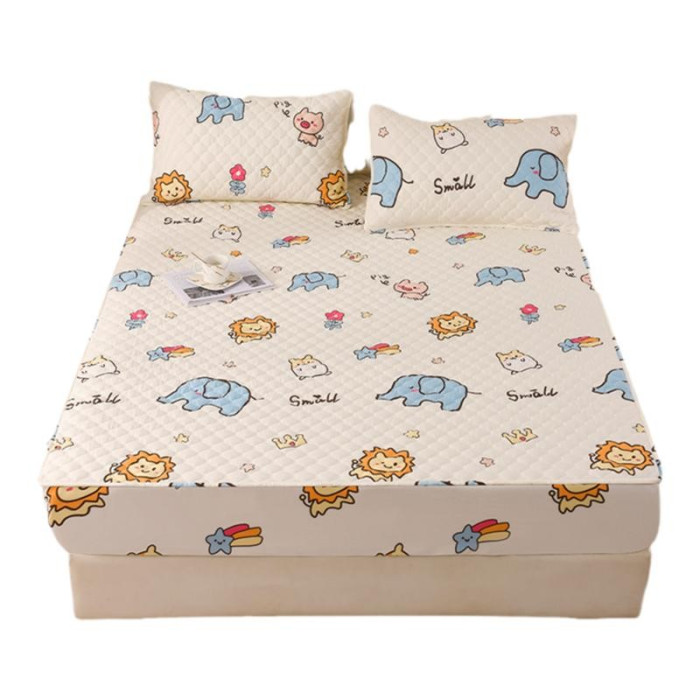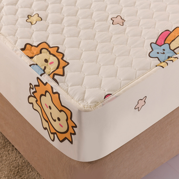 A類抗菌純棉床笠單件全棉加厚夾棉蓆夢思床墊套防滑卡通兒童床罩