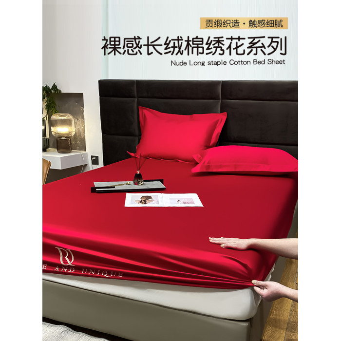 大紅色結婚慶床笠三件套純棉全棉100床罩單件六面全包床墊套高檔