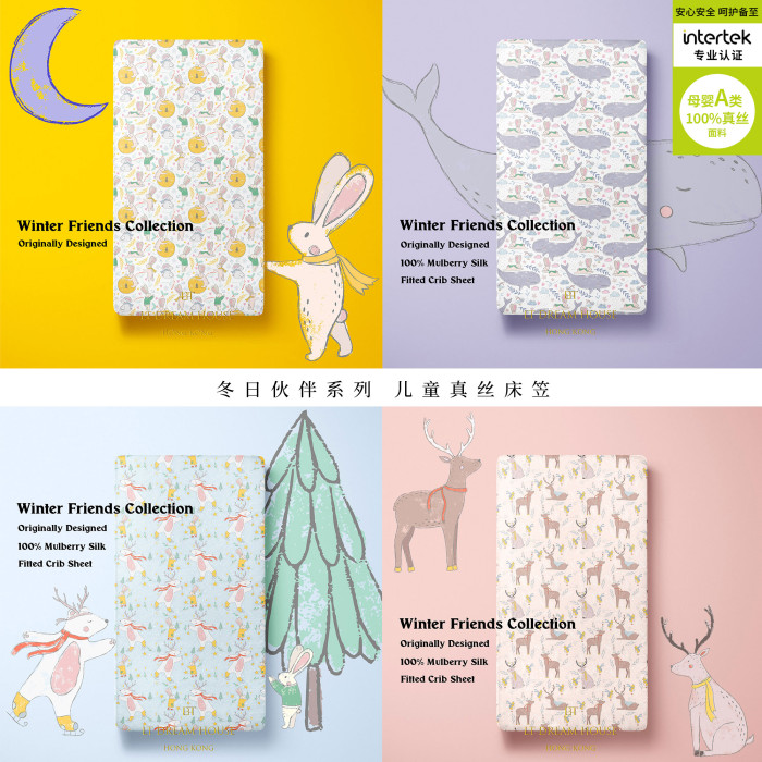 冬日夥伴兒童真絲床笠22姆米重磅桑蠶絲床單母嬰幼A類寶寶周嵗禮