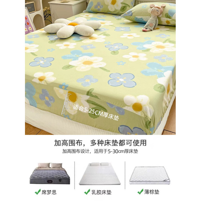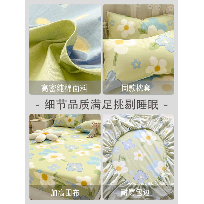 田園純棉床笠單件100全棉四季通用床罩枕套2三件套兒童榻榻米床單