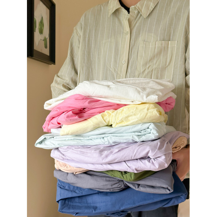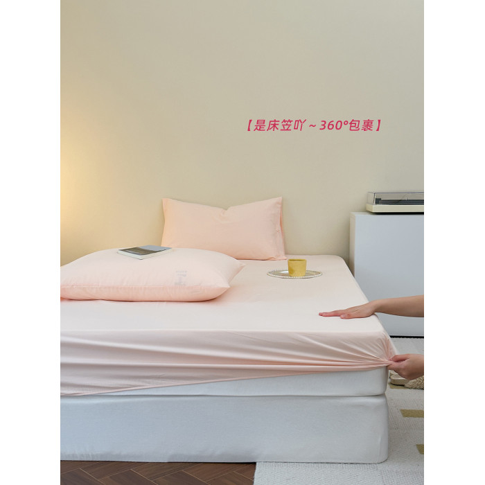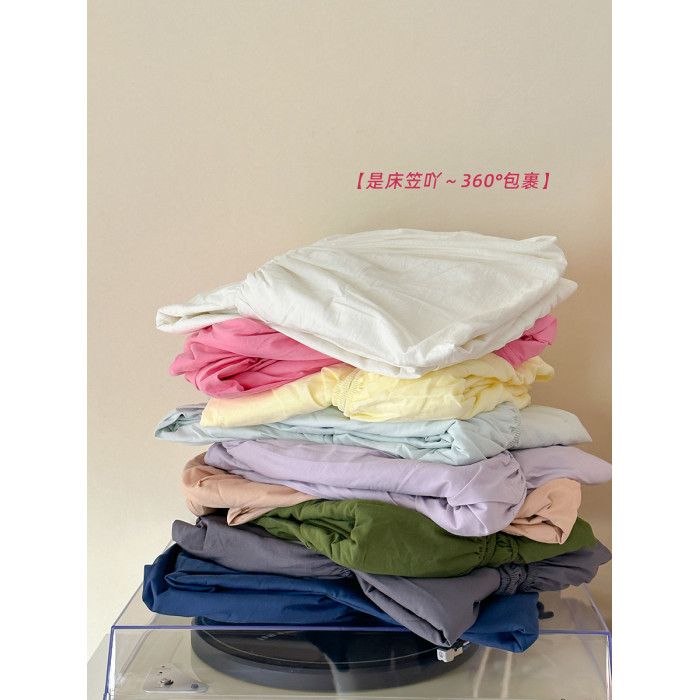 花田小汐 純棉馬卡龍色單件床笠純色單雙人防滑固定床罩1.5m1.8米