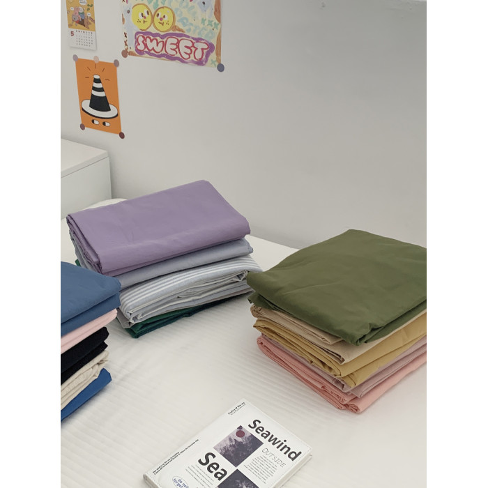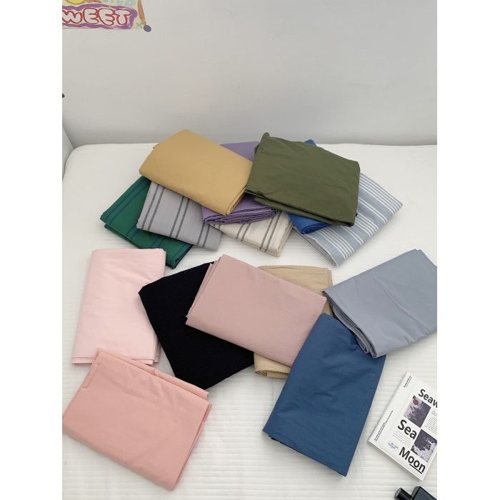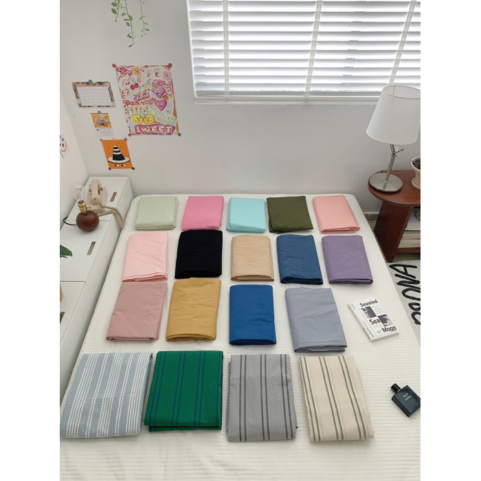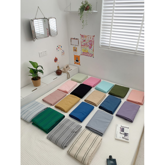 多巴胺色純色條紋裸睡純棉透氣吸汗床單全棉水洗棉床笠