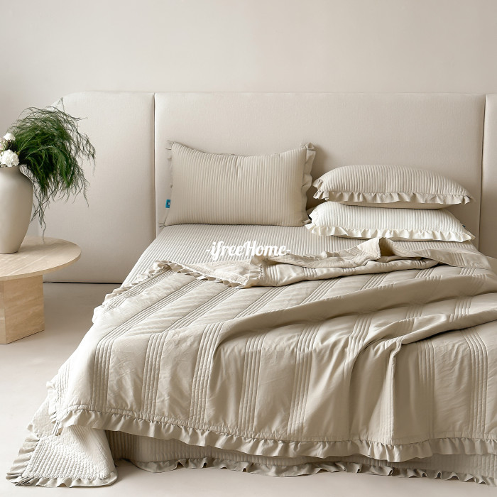 ifreeHome韓系涼感床笠床蓋枕套絎縫A類天絲夾棉絲滑床品極簡夏被