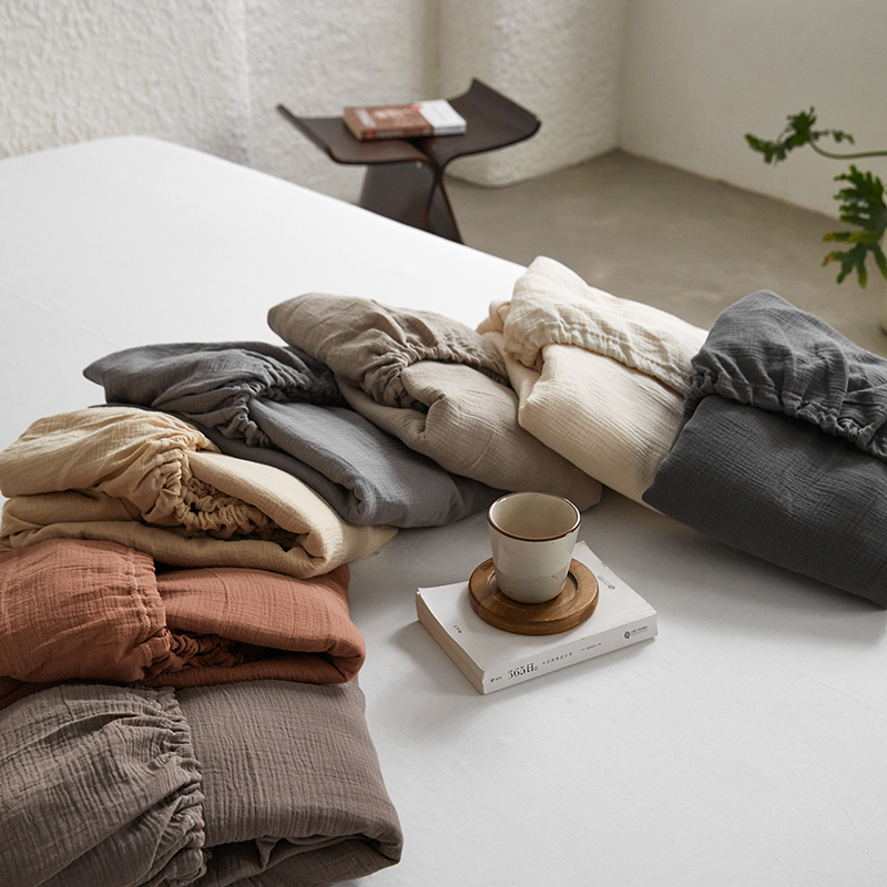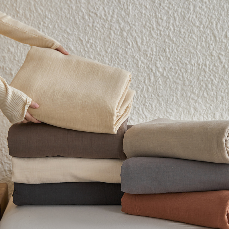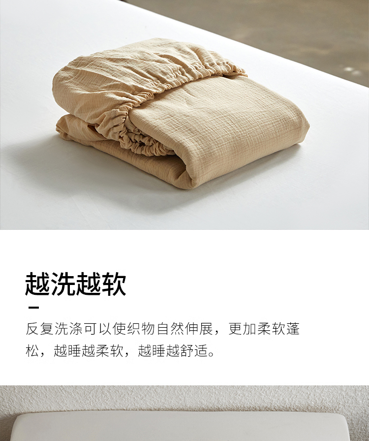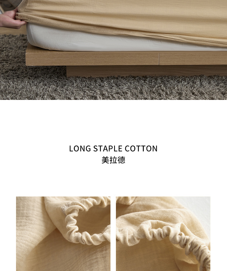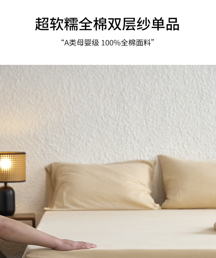 舒適裸睡全棉床單A類雙層紗皺皺紗柔軟純棉單件床笠被套枕套床品