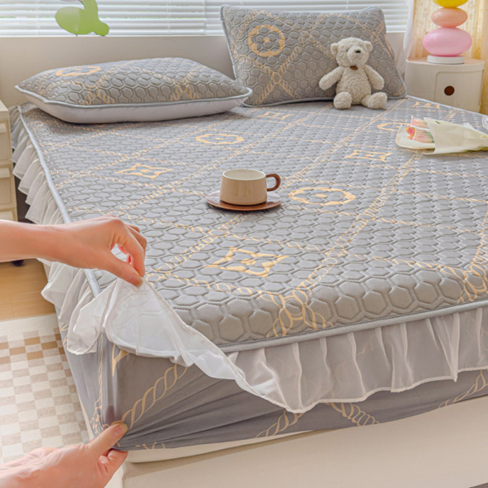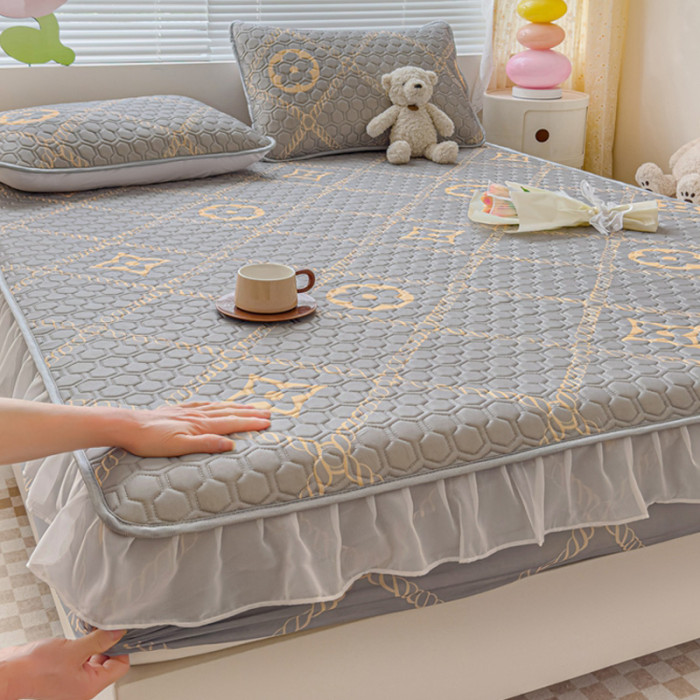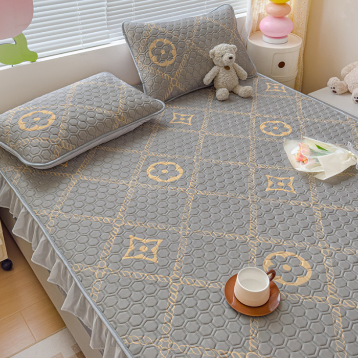 乳膠涼蓆三件套花邊床笠款1.8m夏季冰絲涼蓆四件套夏被軟蓆可機洗
