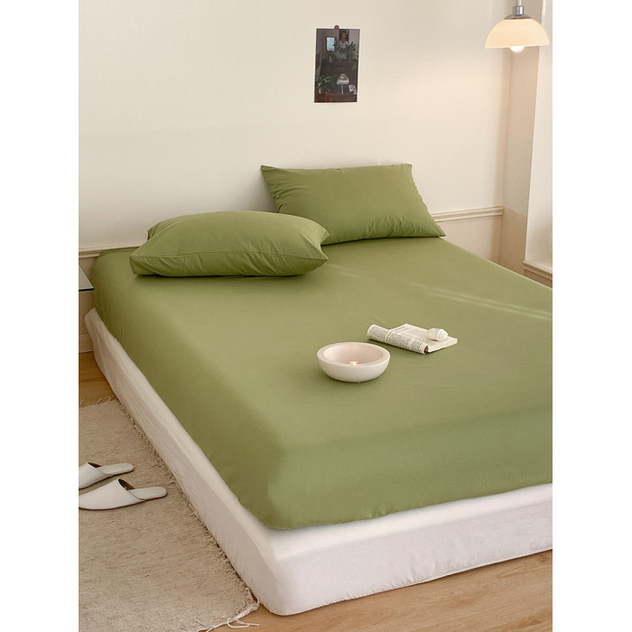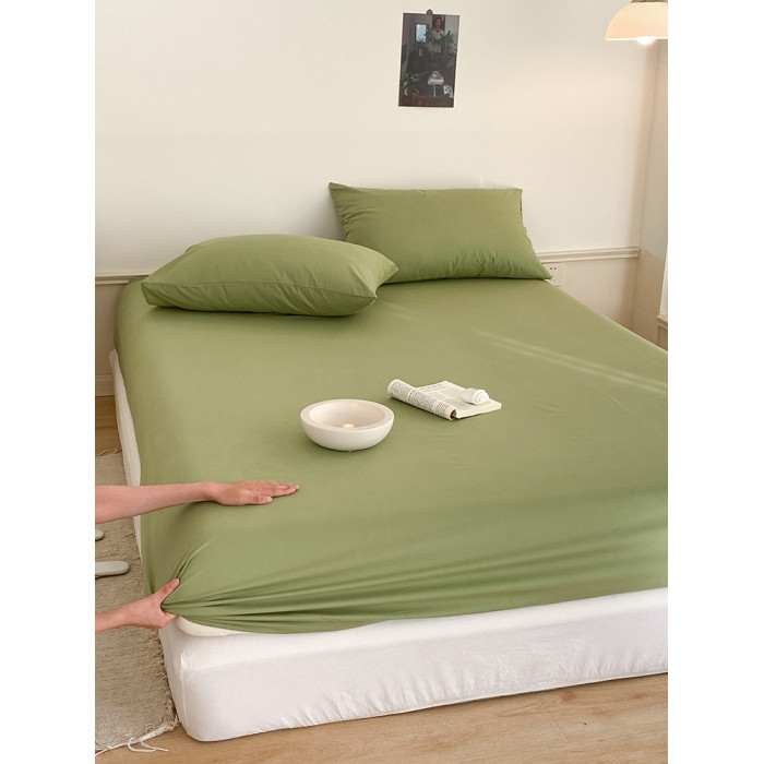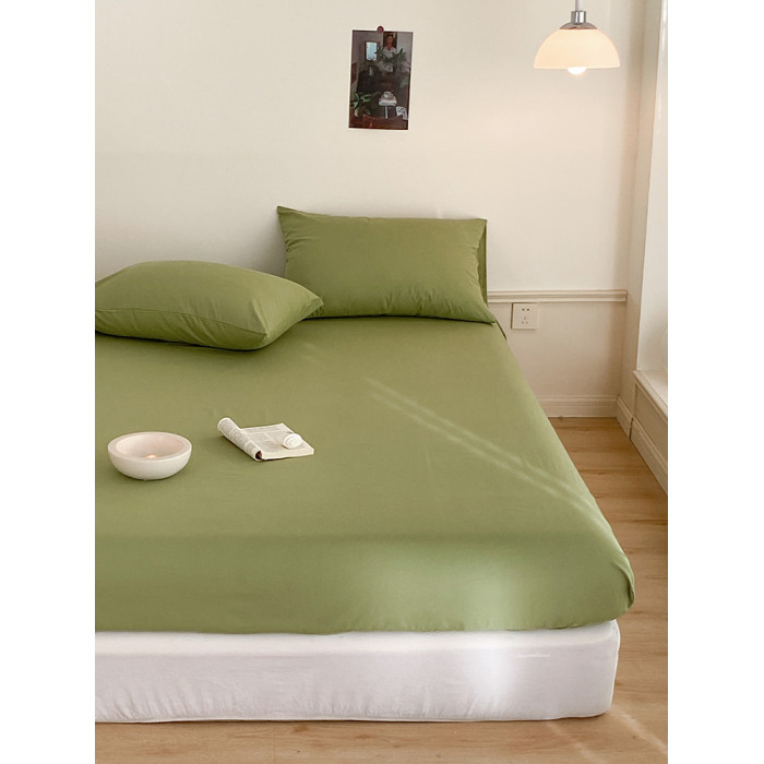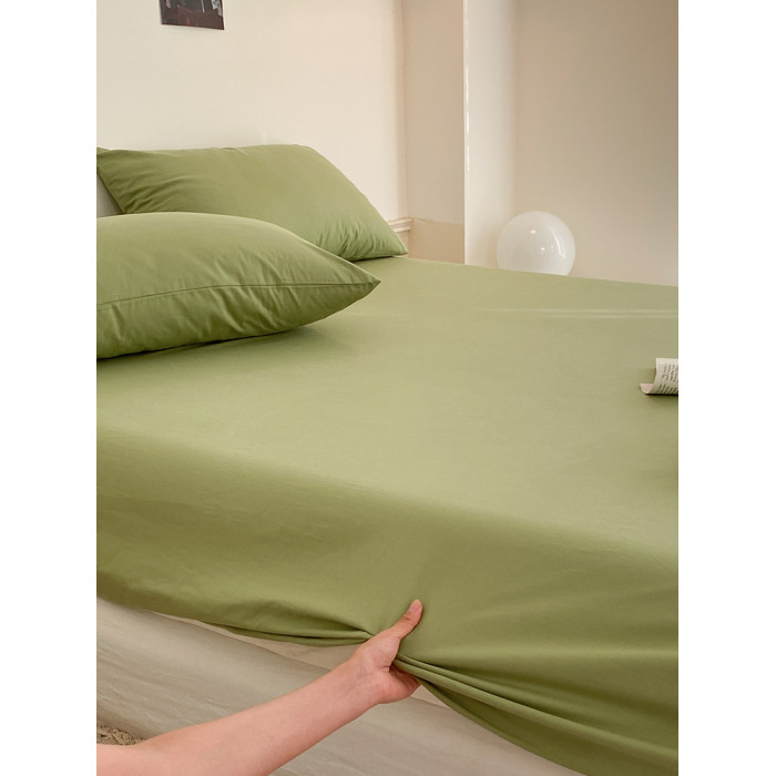 全棉簡約純色單床笠~純棉水洗棉床墊套床罩防滑防塵親膚吸汗透氣
