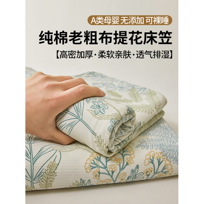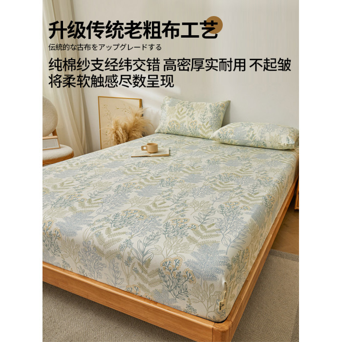 全棉老粗布床笠180cmx200cm+枕套1對