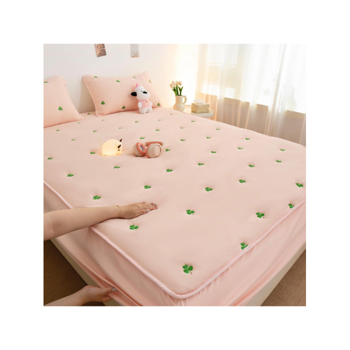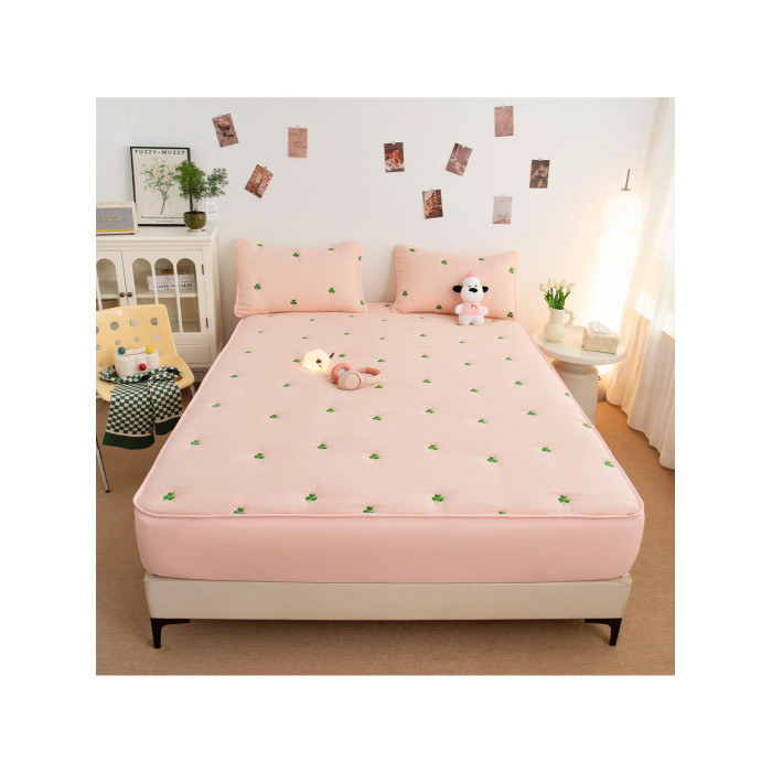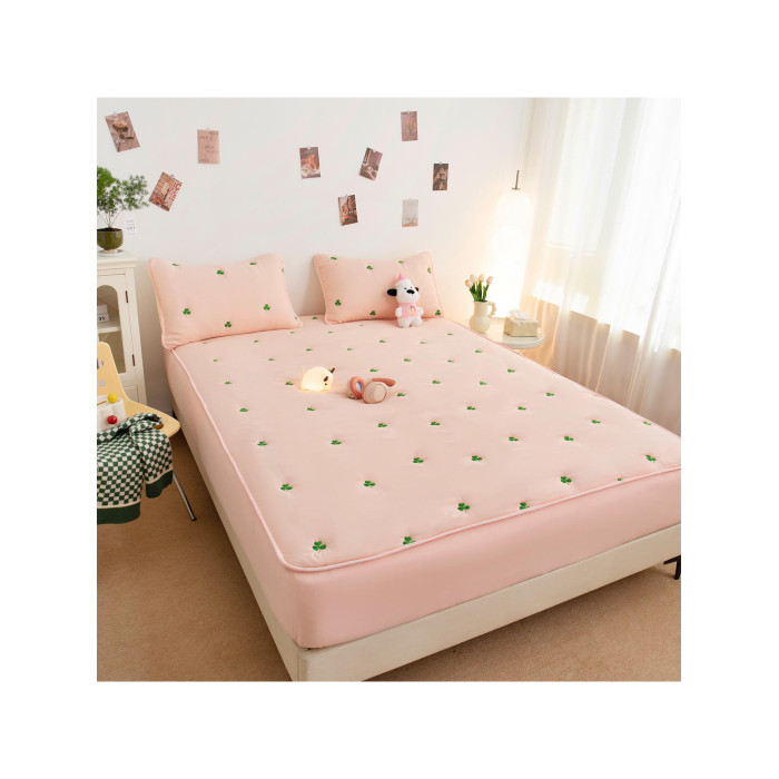 A類親膚夾棉刺綉單品床笠單雙人單件蓆夢思床罩加厚床套四季通用