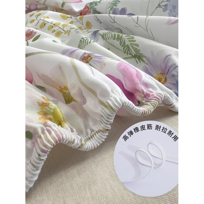 100支長絨棉貢緞印花純棉床笠150X200X180cm四季全棉單人床罩兒童