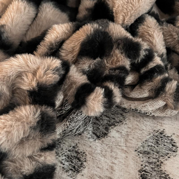 A類冬季加厚兔絨床笠單件保暖親膚豹紋床罩牛奶絨黑色1.8米三件套
