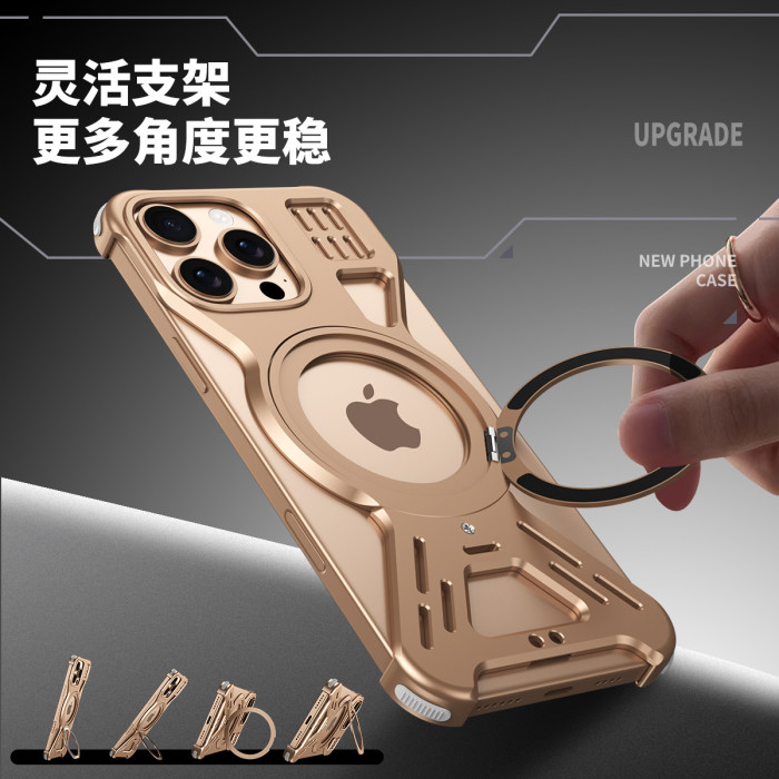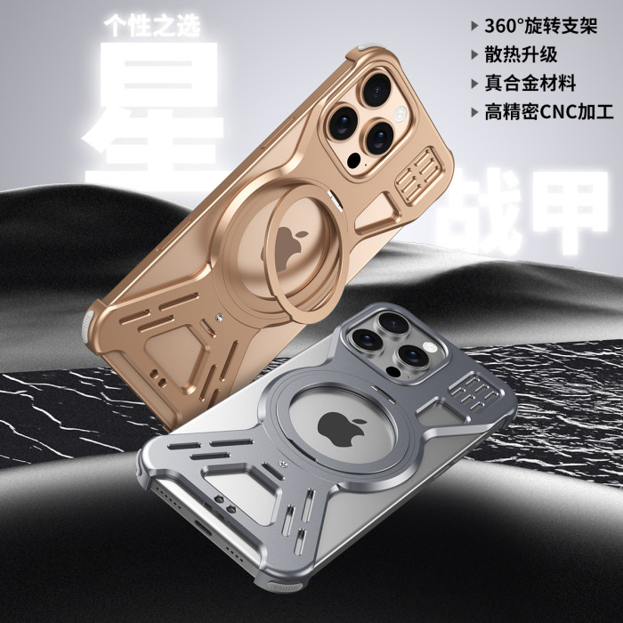 旋轉磁吸支架適用蘋果16promax手機殼散熱鏤空鋁合金iphone15無邊
