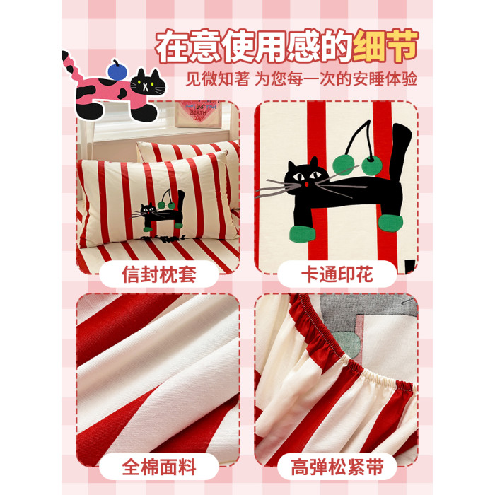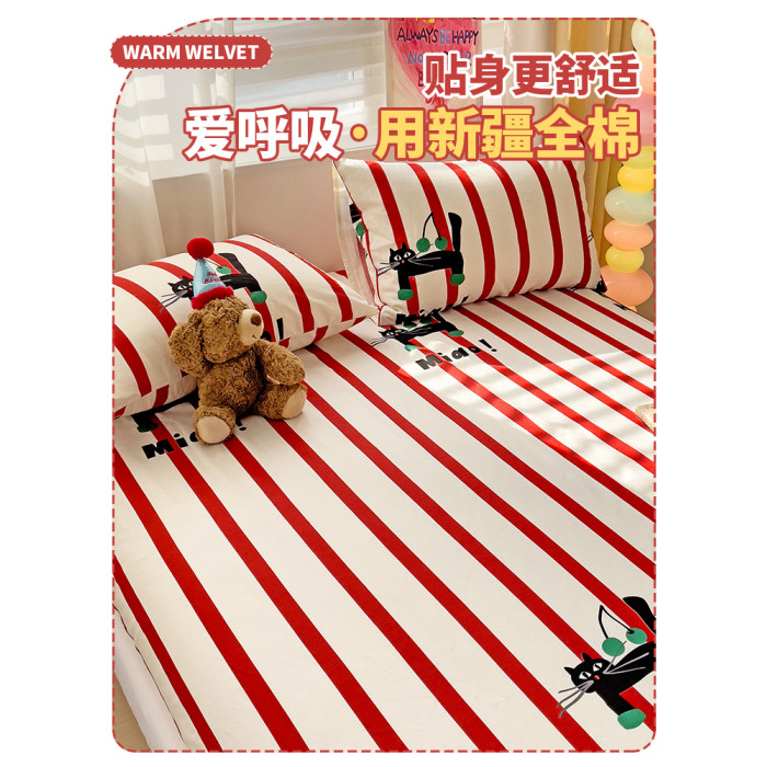 純棉防滑床笠單件100全棉床罩加厚床套紅色新年單人厚床單2三件套