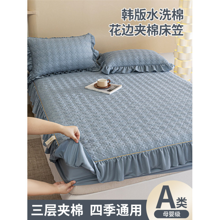 2025春夏季新款花邊床笠單件床罩帶裙邊四季通用公主風夾棉床單人
