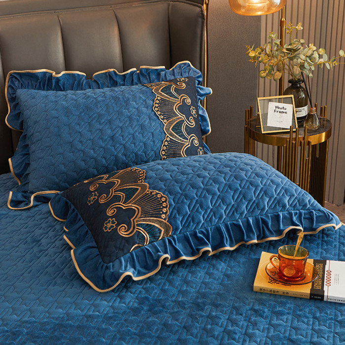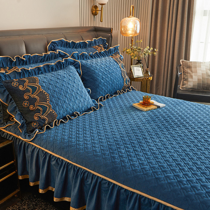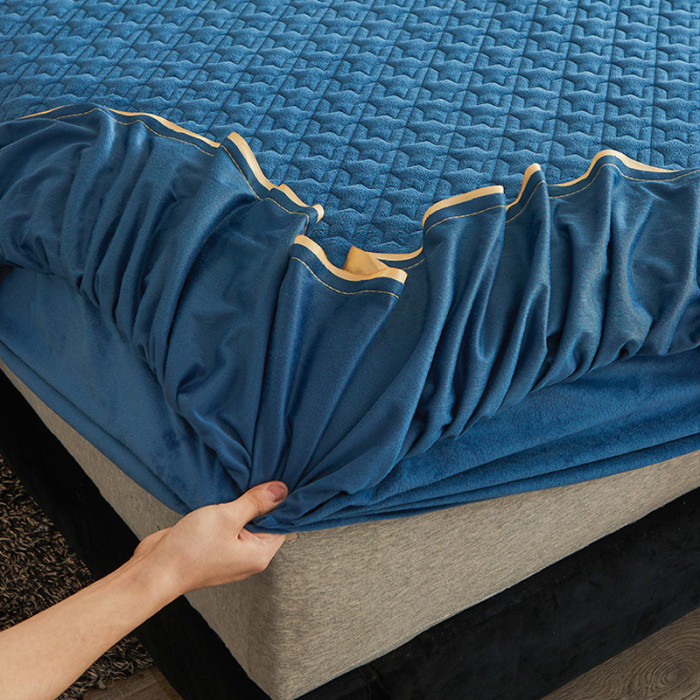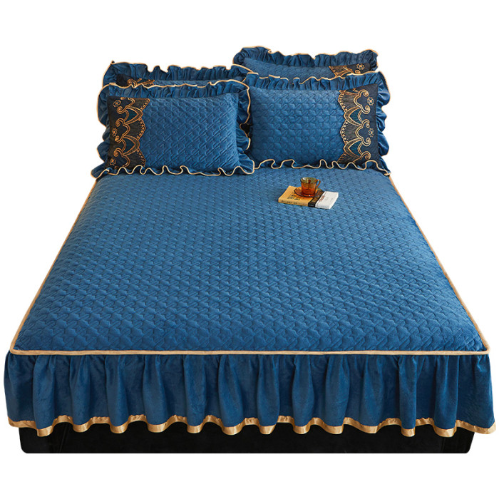 冬天牛奶水晶絨夾棉床笠款單件加厚珊瑚絨保暖帶裙邊床笠罩三件套