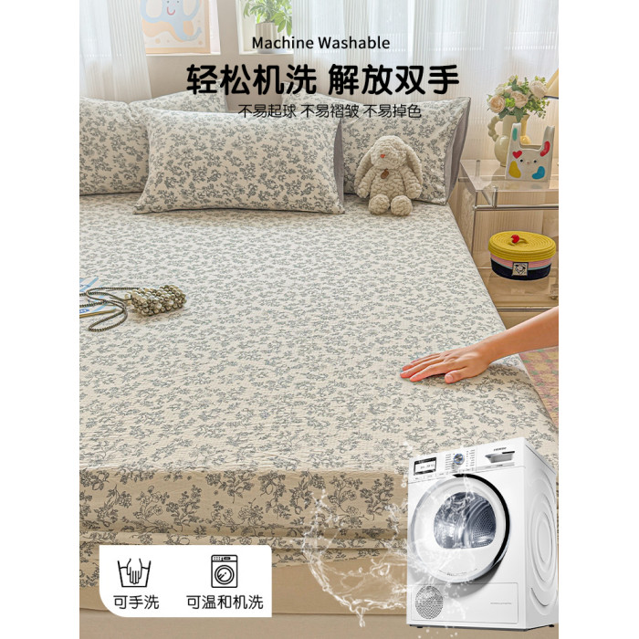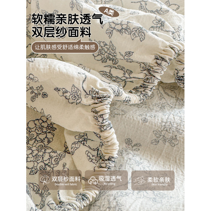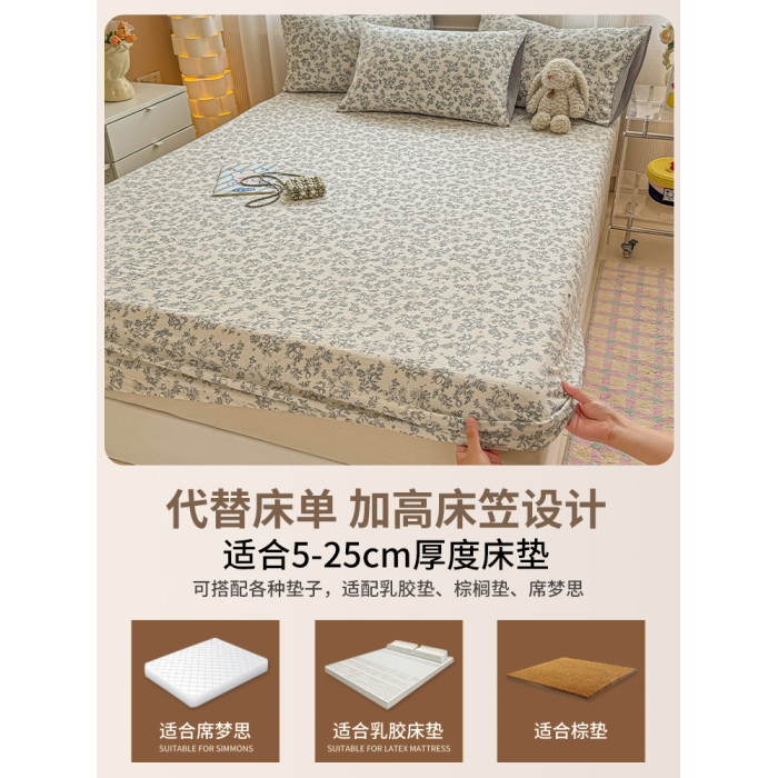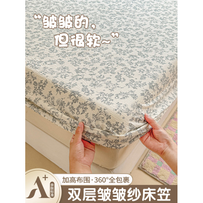 A類超柔雙層紗布床笠單件全包床罩四季通用非純棉床單人床墊套罩3