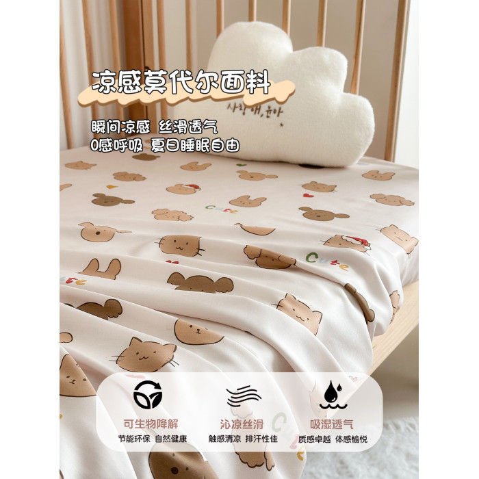 A類莫代爾天絲兒童床笠夏季涼感冰絲幼兒園小寶寶午睡拼接床墊罩