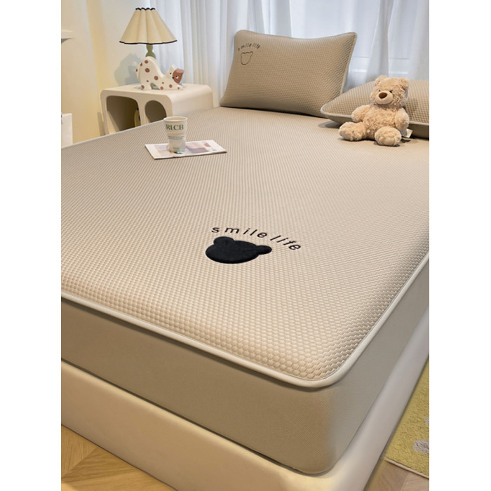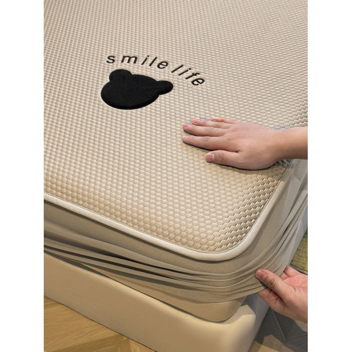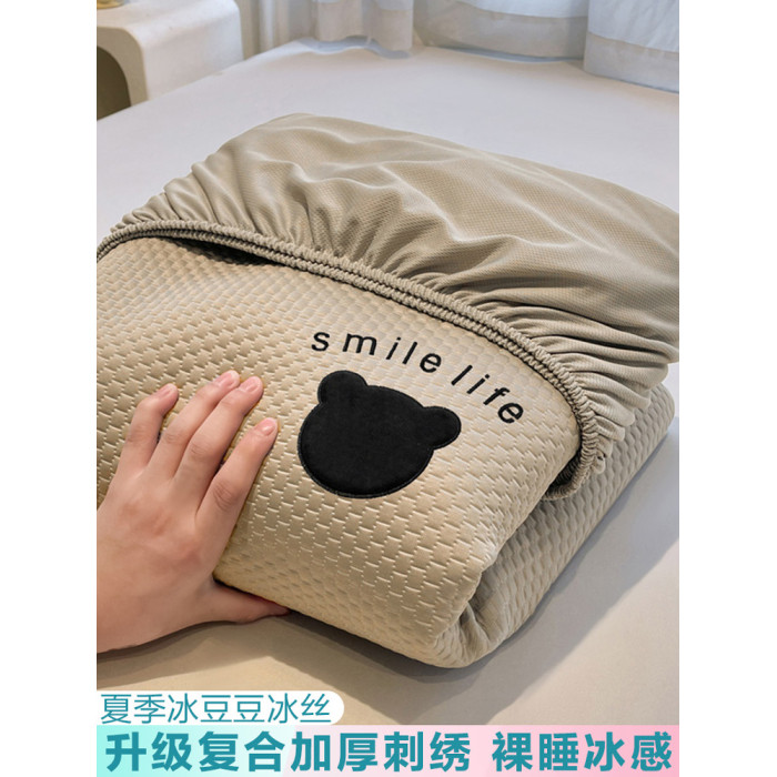 日本進口刺綉涼豆豆床笠夏季冰絲涼蓆床墊保護套床罩防滑涼感床單