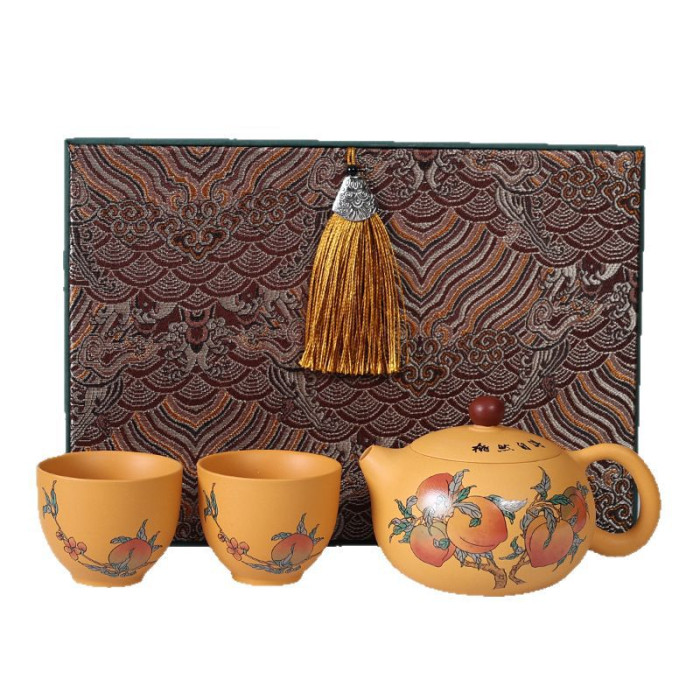 黃段泥紫砂壺高檔西施壺手工鳳鳴壺一壺兩杯泡茶器商務禮品套裝