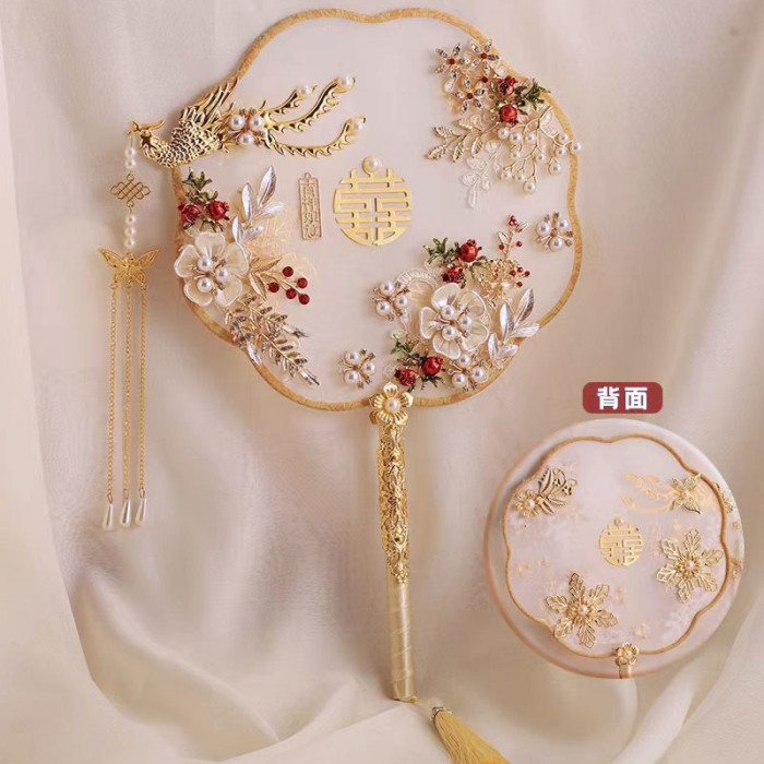 結婚新嫁團扇古風成品中式婚禮秀禾扇手工喜扇成品古風出嫁材料包