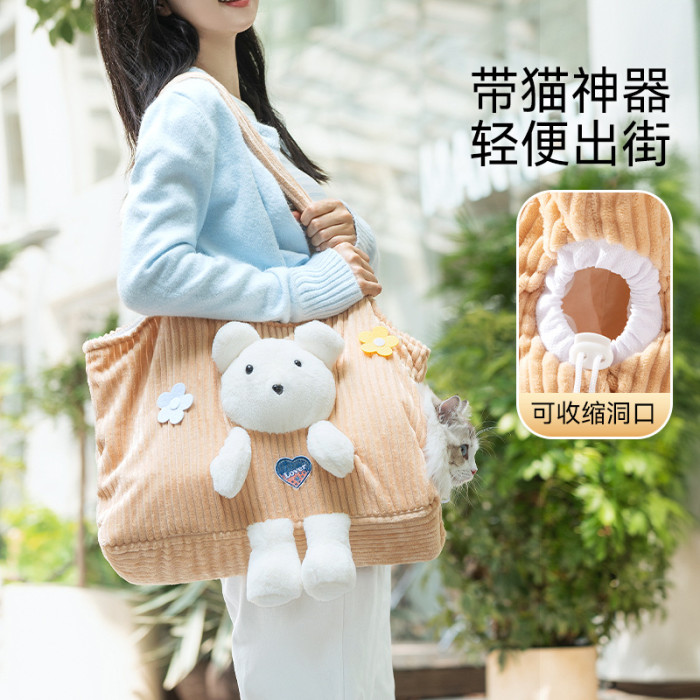 秋冬季保暖加厚可愛小熊貓咪外出單肩包可探頭狗狗可攜式包寵物貓包