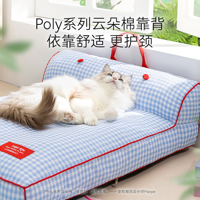 春夏季韓系撞色靠背墊子四季通用貓窩狗墊子貓沙發護頸寵物窩用品