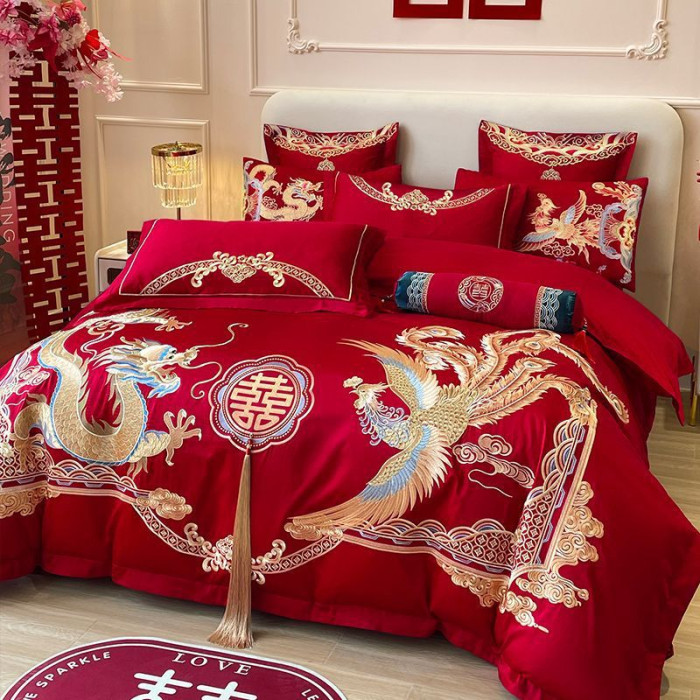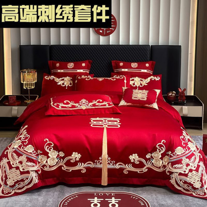 婚慶四件套婚嫁新婚床品刺綉被套紅色結婚禮婚房婚床喜慶綉花套件