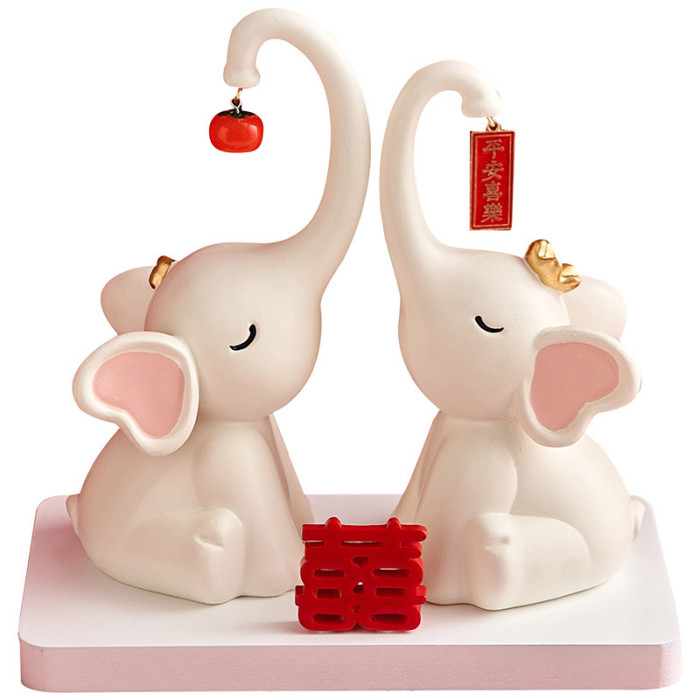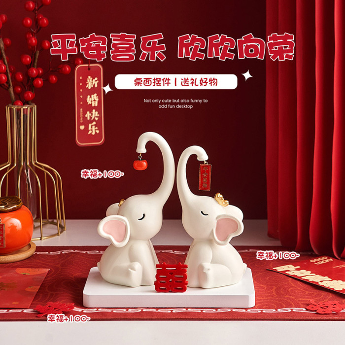 創意情侶大象擺件客廳電視櫃婚房裝飾品訂婚結婚禮物樹脂寓意擺件