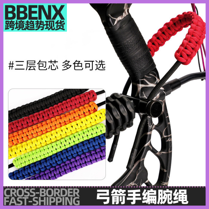 弓箭器材射箭複合腕繩弓箭腕繩手編腕繩長短可調複合滑輪弓手編腕