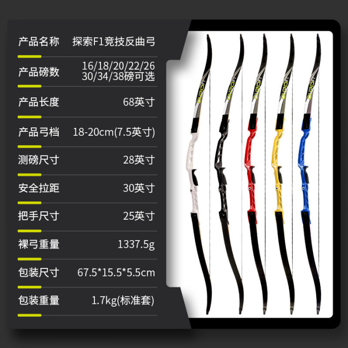 JR競技射箭反曲弓探索F1訓練比賽弓箭射箭館用弓入門級多規格多色
