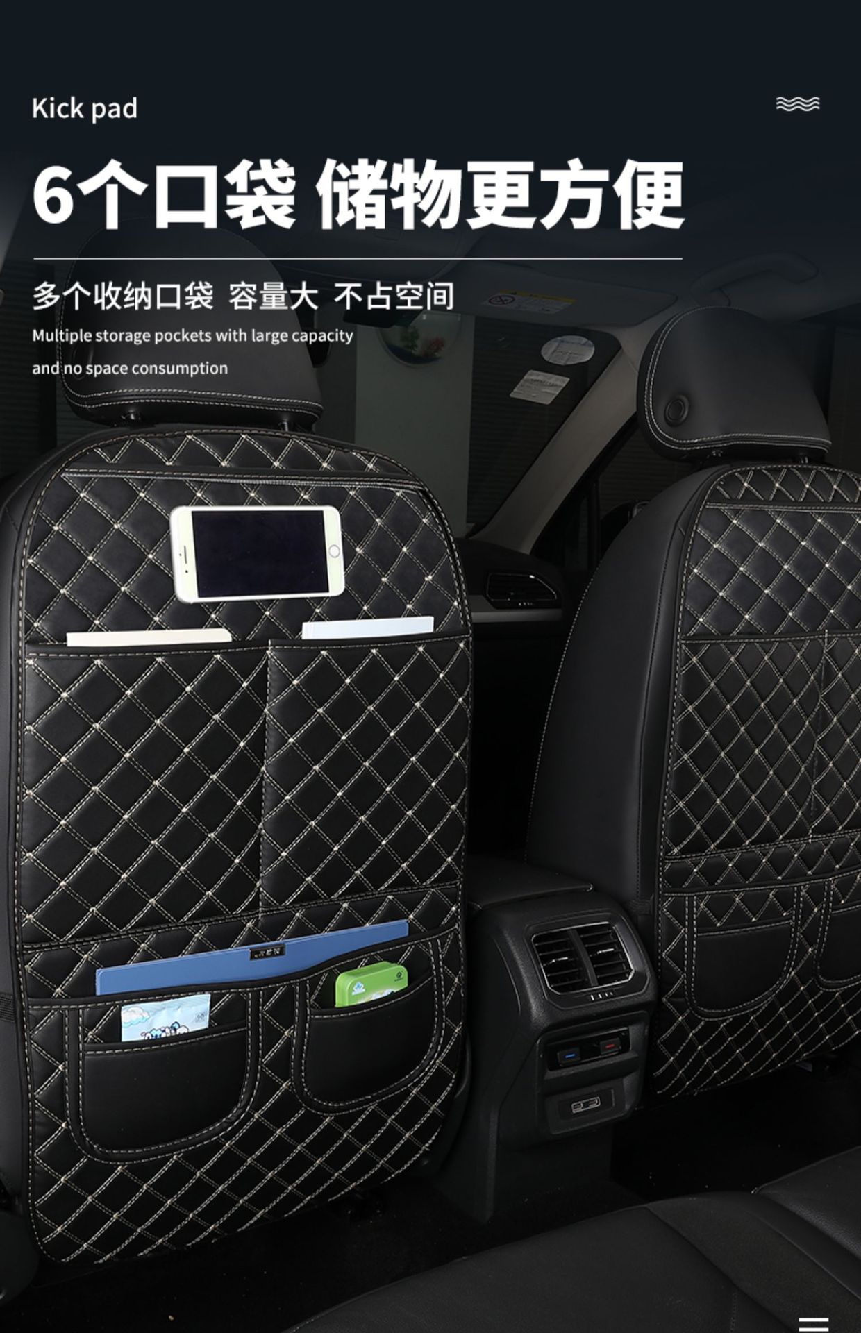 通用汽車座椅椅背防踢墊皮革兒童保護墊車用收納袋車內防護墊