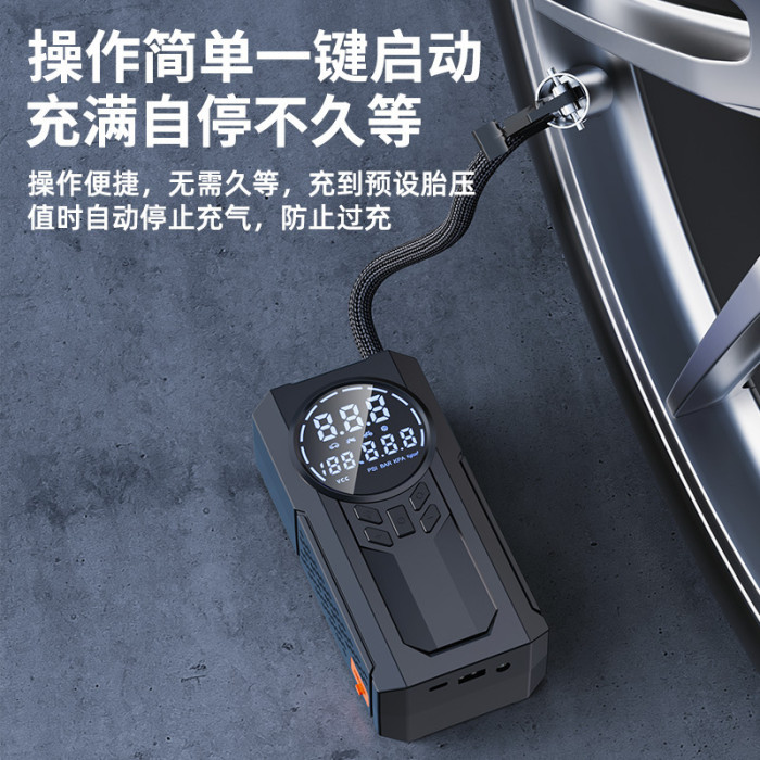 充氣泵車用打氣泵電動汽車用無線輪胎帶測胎壓應急啓動電源一體機