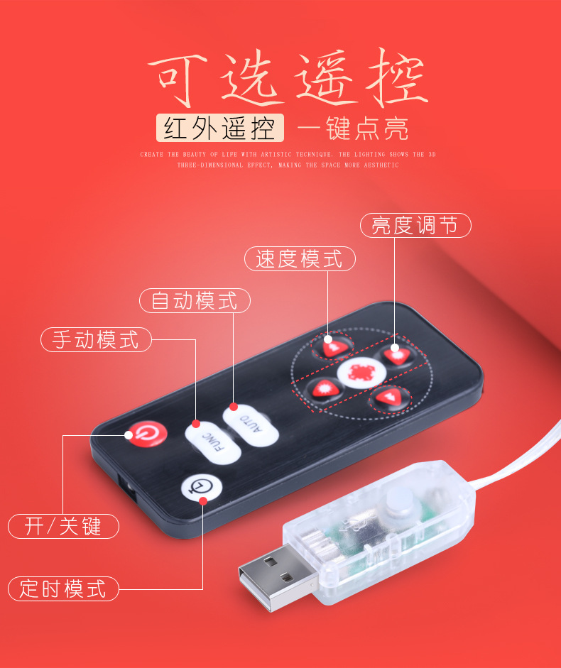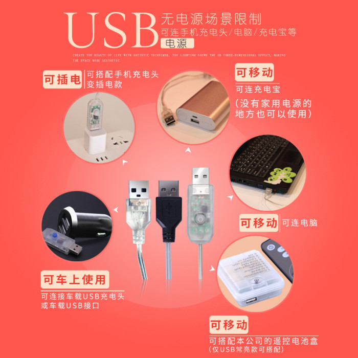 燈光顔色 | 聖誕USB圓磐冰條燈【彩色遙控】 |