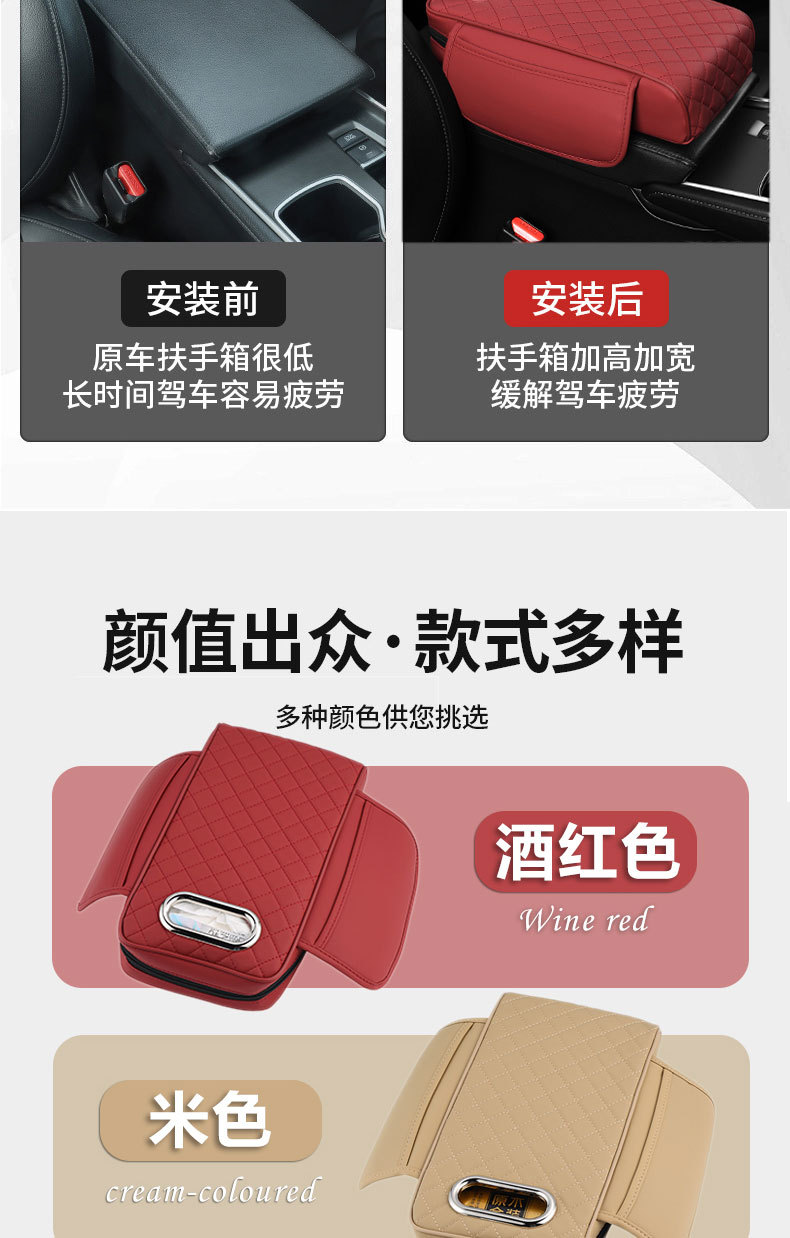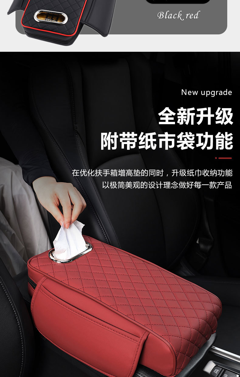 汽車扶手箱墊車用紙巾盒通用收納袋肘托墊多功能三合一扶手增高墊