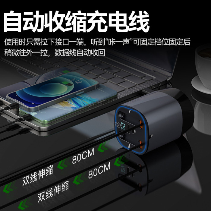 杯式汽車伸縮線車用充電器車用手機充電器數顯氛圍燈超級快充100W