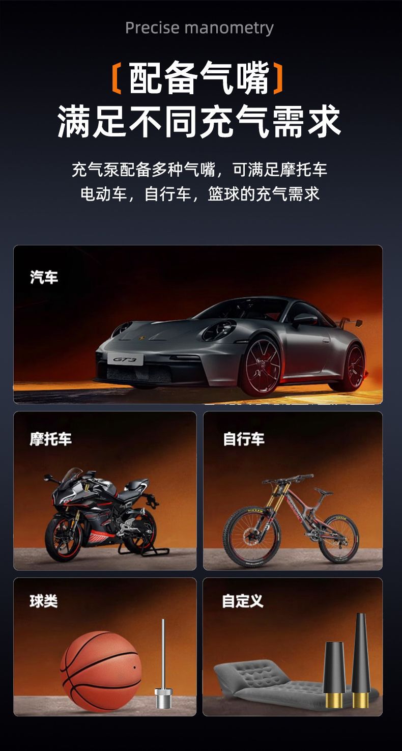爆款新品車用充氣泵數顯有線大功率可攜式手持式汽車打氣泵