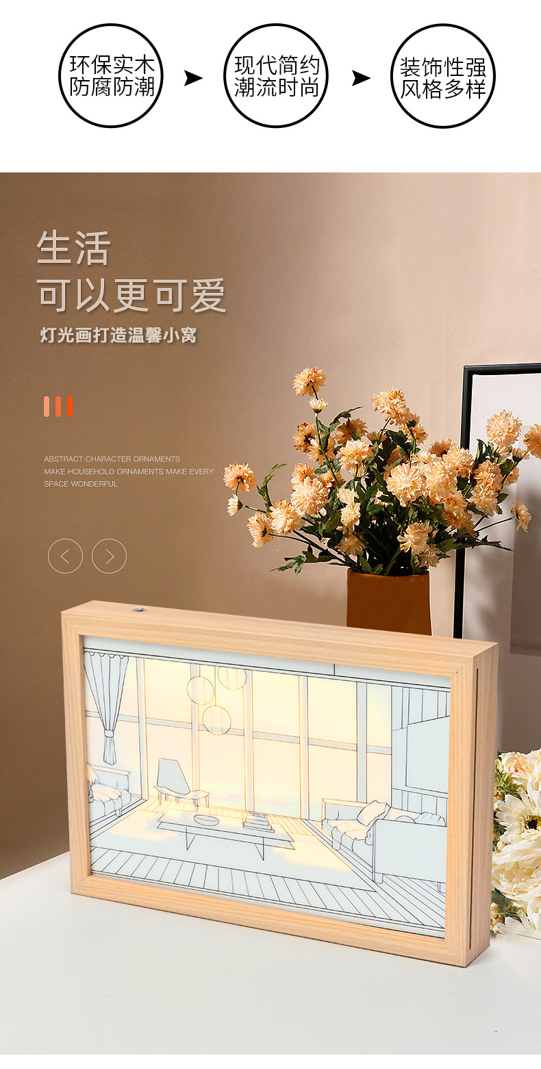 相框畫燈光畫小夜燈 led擺件裝飾壁畫燈客廳臥室觸控光影