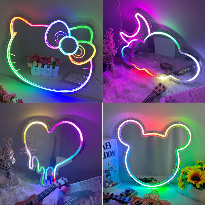 霓虹化妝鏡全彩幻彩rgb鏡面霓虹燈臥室裝飾跑馬流水燈