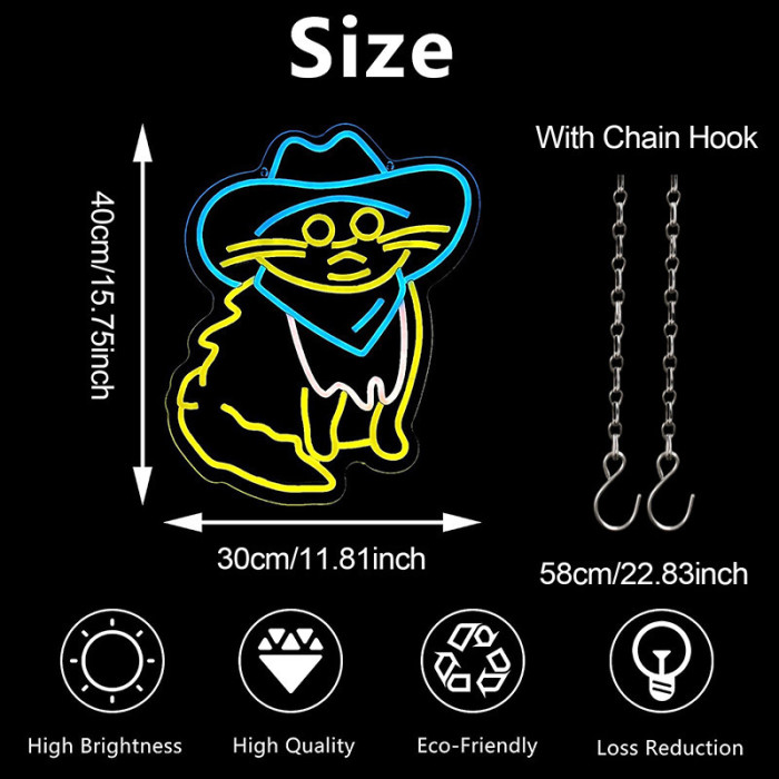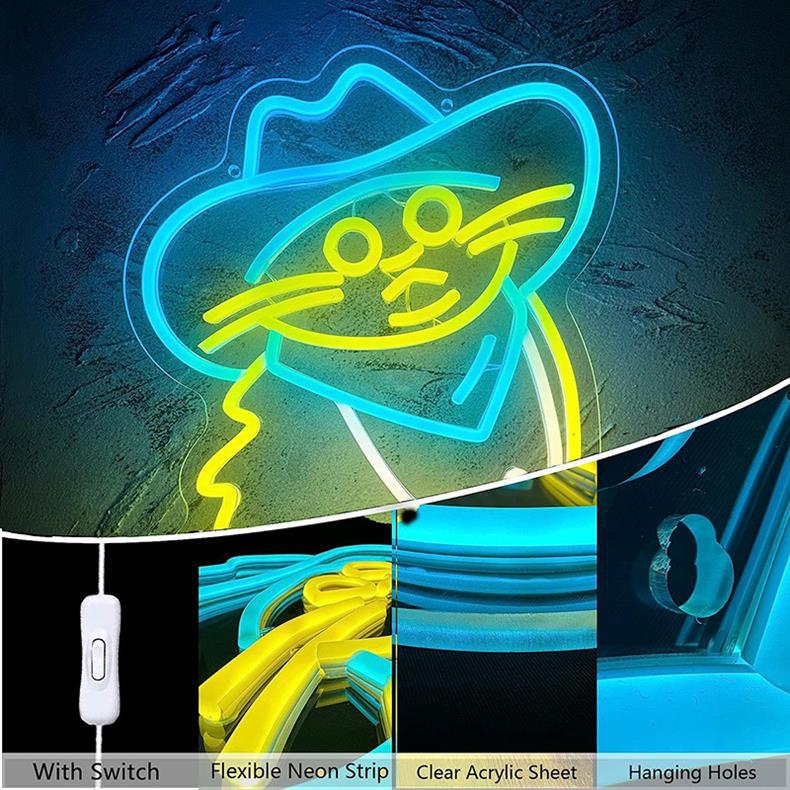 LED牛仔貓霓虹燈牌房間臥室裝飾燈牌室外裝飾露營燈牌