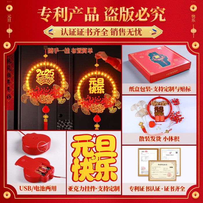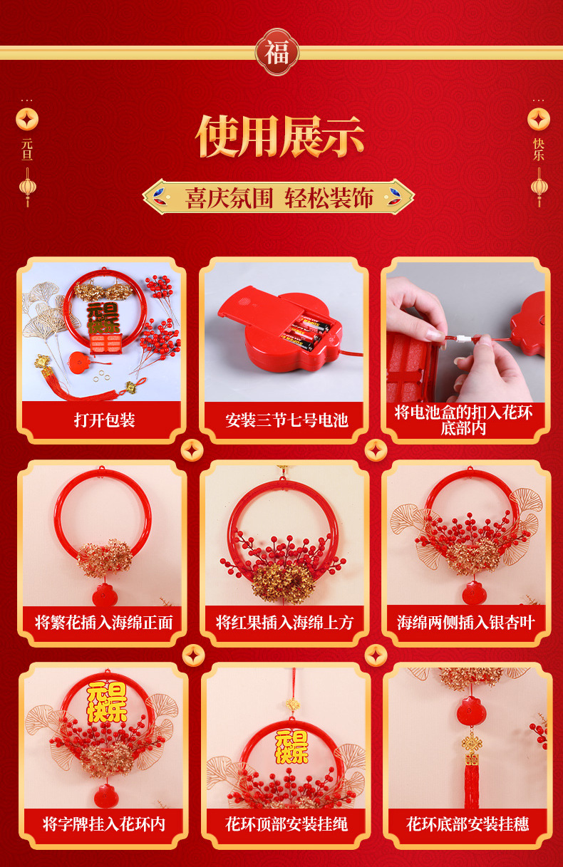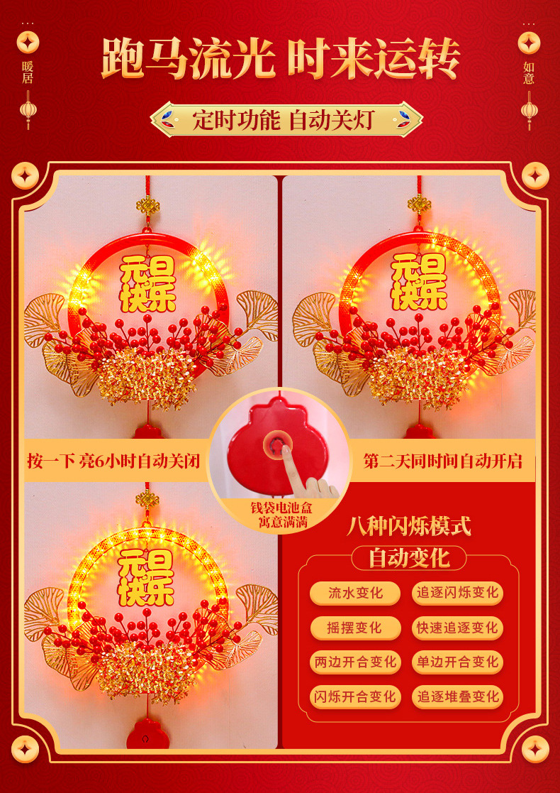 燈光顔色 | 招財進寶【28cm鴻運花環】 |