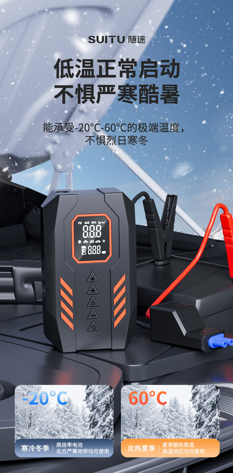 應急汽車打火啓動照明充氣一體機行動電源測胎壓車用打氣泵可攜式
