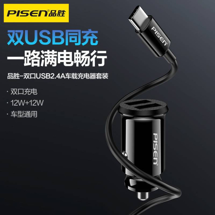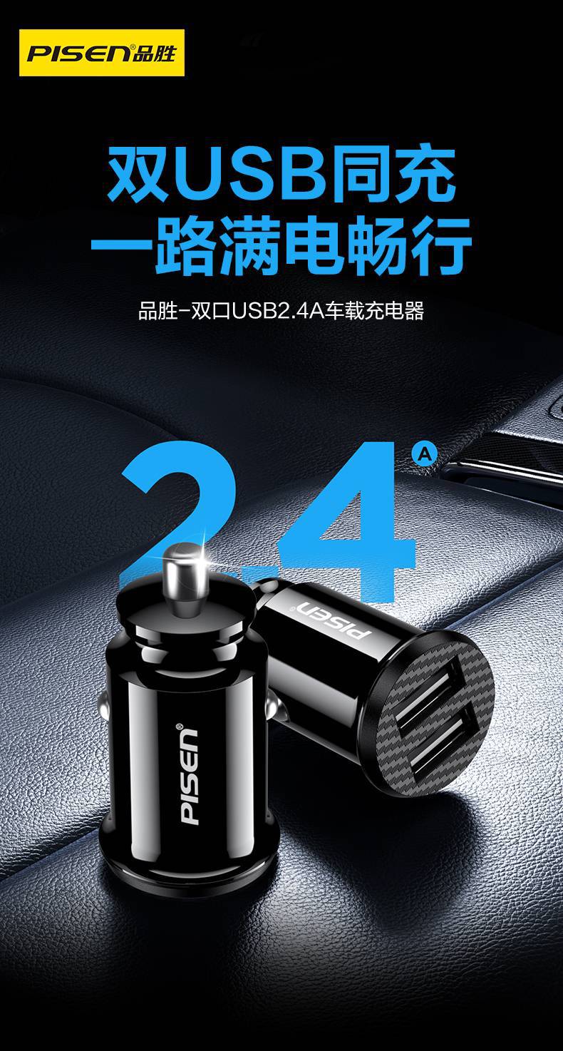 品勝雙口USB2.4A車用充電器Vivo蘋果華爲小米oppo平板手機24V