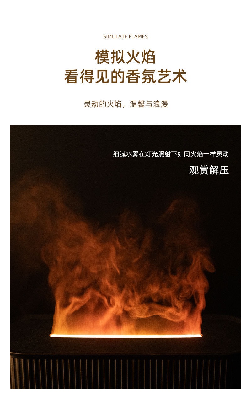 新款桌面七彩仿真火焰香薰機 家用酒店usb擴香機空氣加溼器香薰機