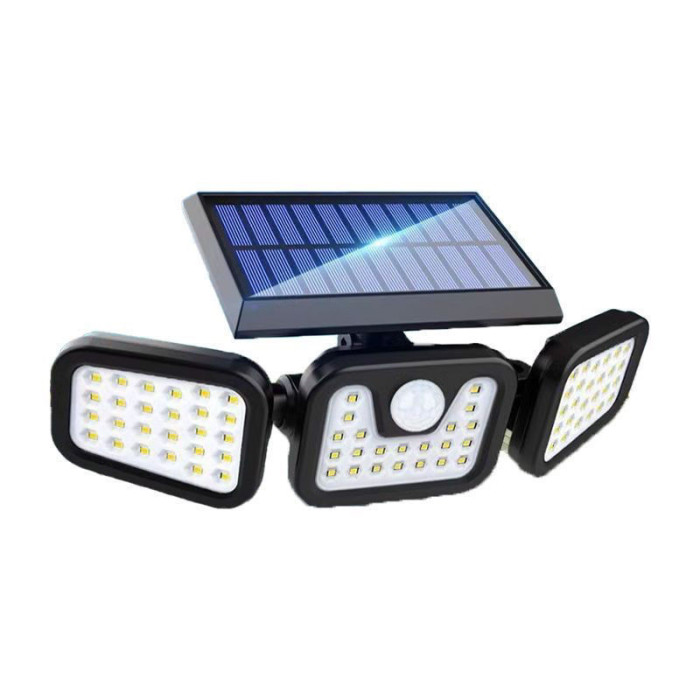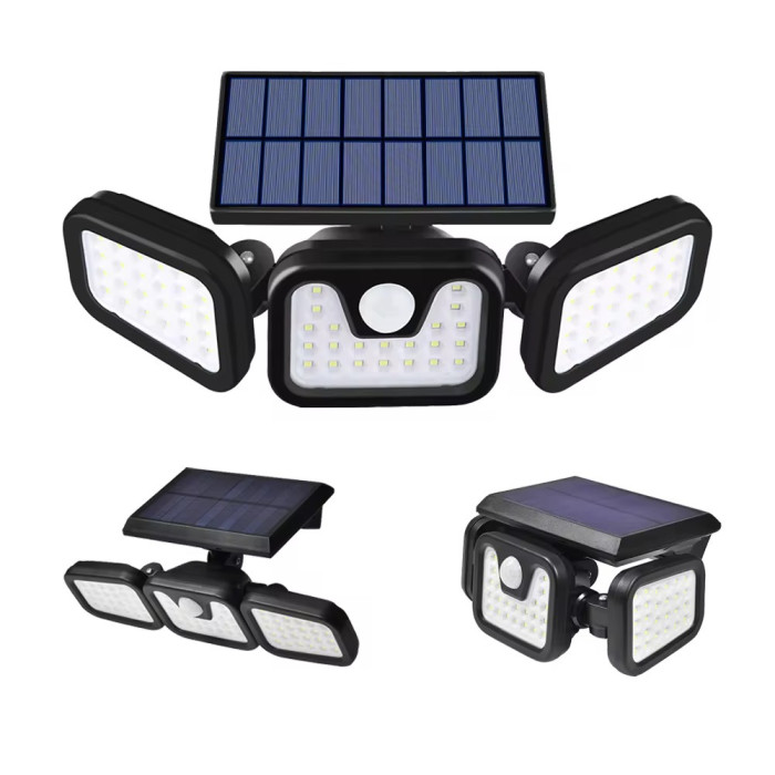 新款74LED太陽能感應燈三頭可旋轉感應壁燈戶外花園燈車庫燈