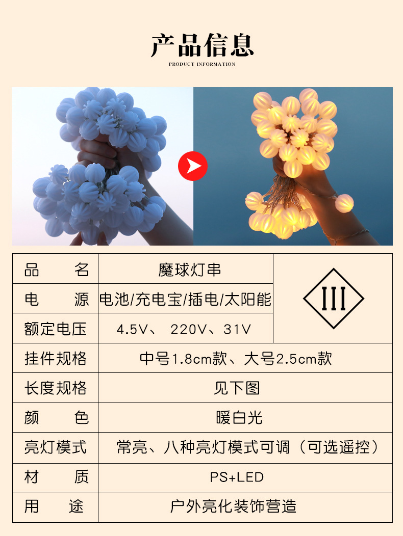 發光太陽能魔球圓球led燈串戶外露營天幕帳篷氛圍裝飾布置掛飾