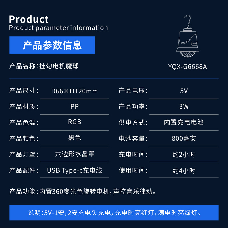 掛鉤電機旋轉魔球彩燈-【1個裝】
