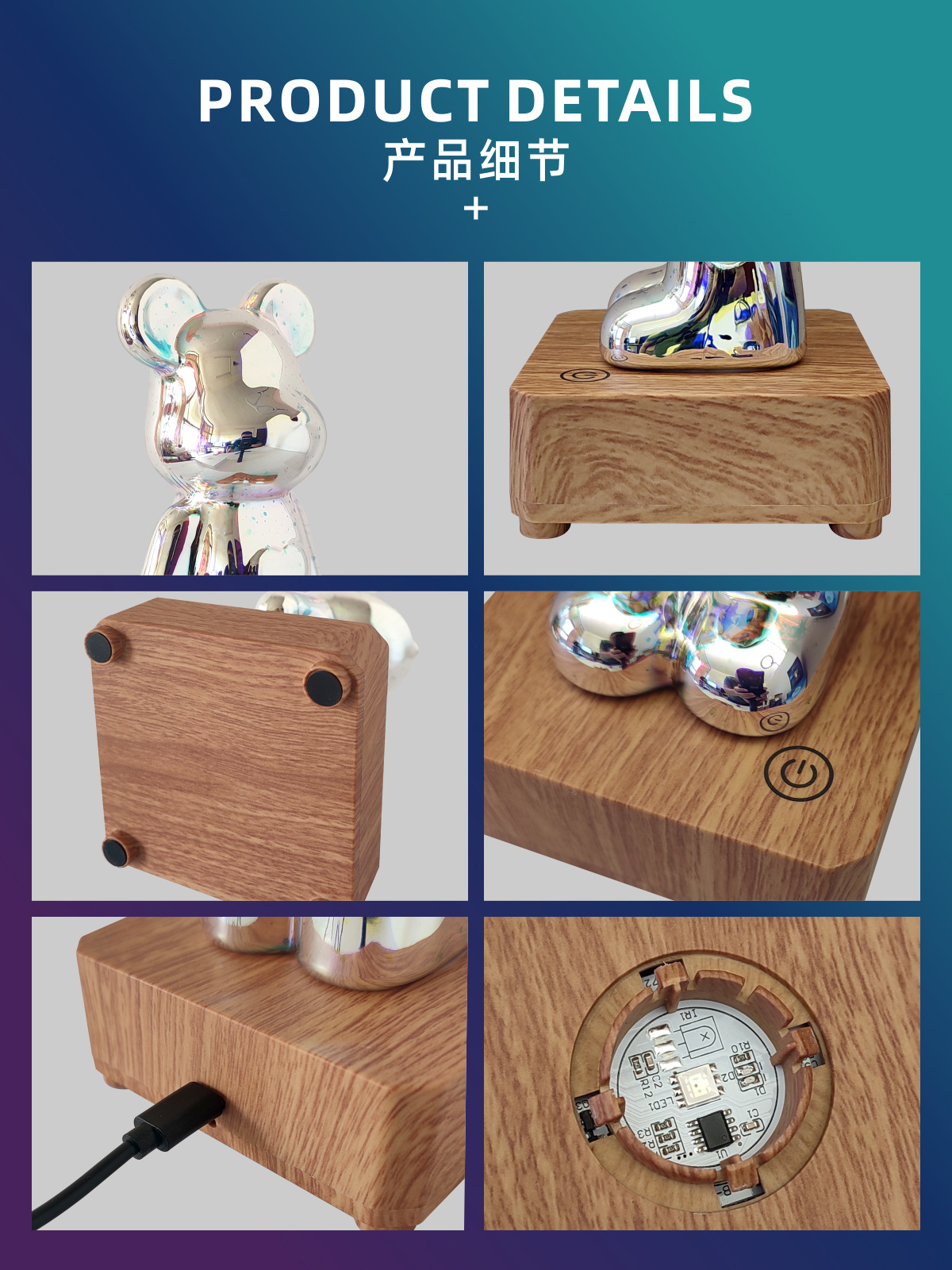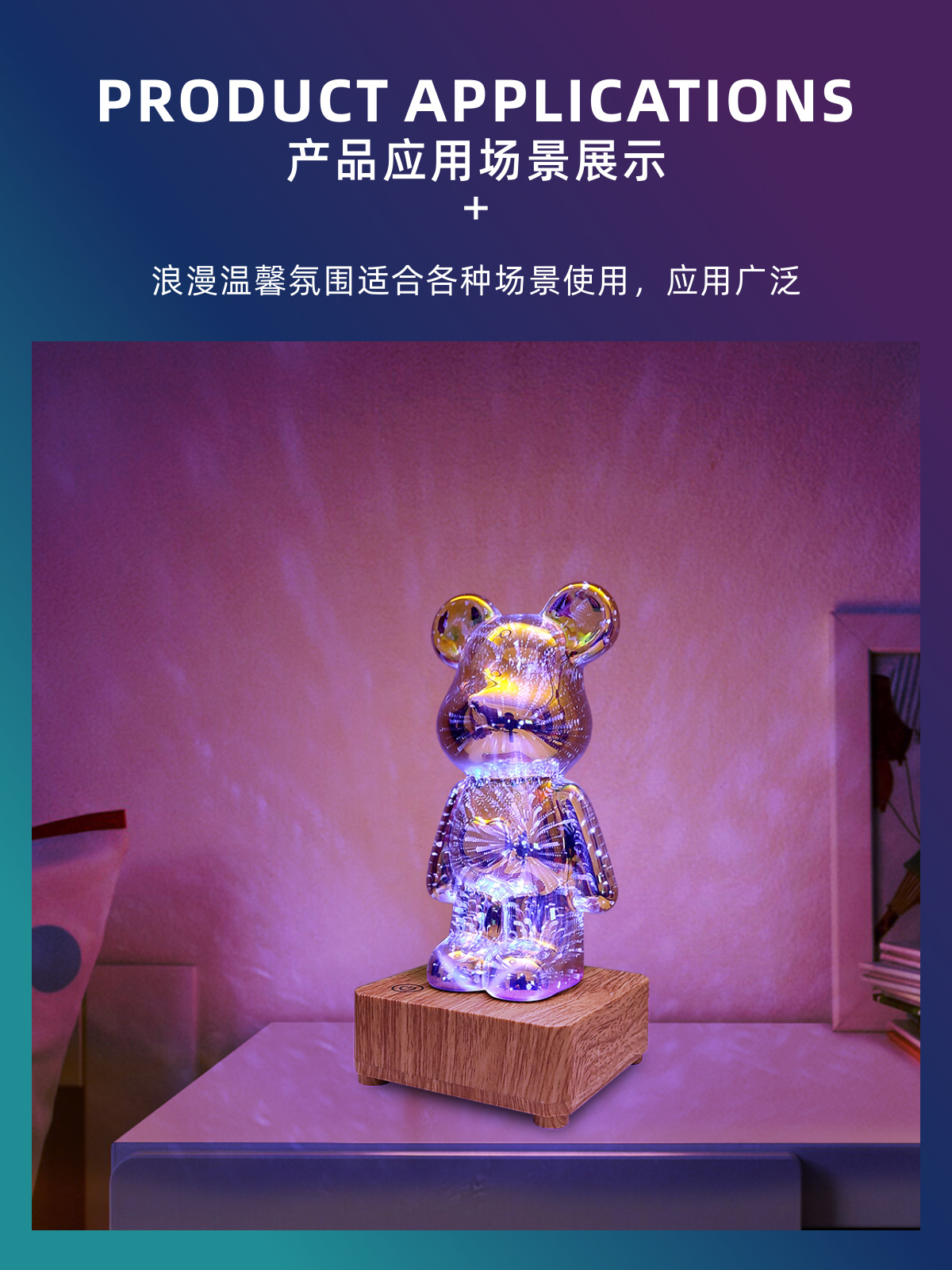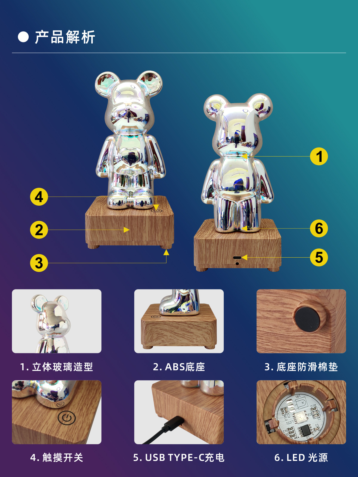 七彩發光小熊小夜燈充電款網紅暴力熊台燈床頭燈生日禮物創意燈