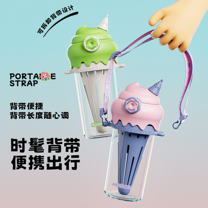 GIAVOS冰淇淋塑膠杯潮流冰激淩水杯兒童學生專用tritan吸管杯子女