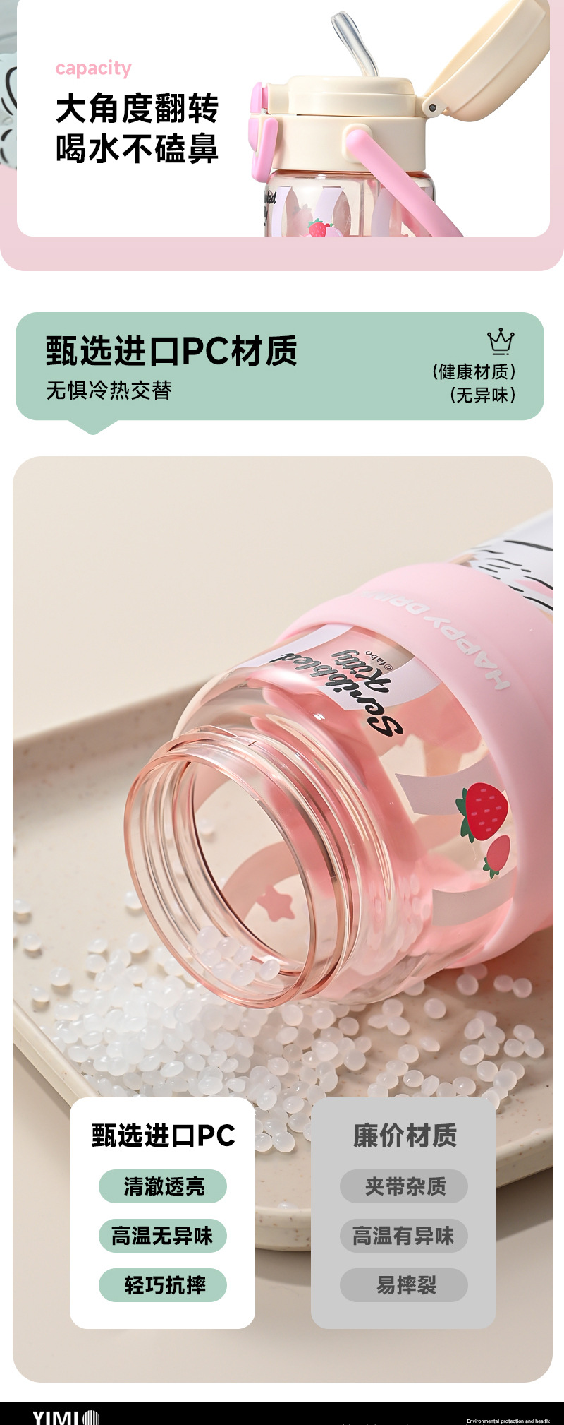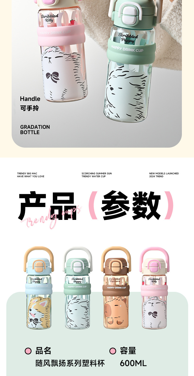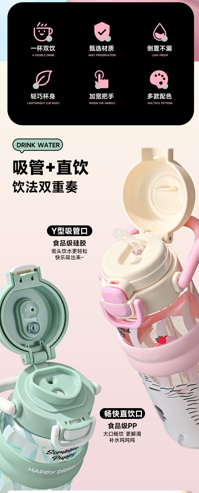 卡通提手隨手塑膠杯夏季戶外學生雙飲吸管杯可攜式大容量太空杯